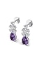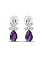 14kt White Finish Diamonds & Amethyst Stone Drop Earrings