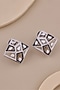 18kt White Gold Finish Diamond & Black Gemstone Stud Earrings