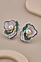 Featuring a pair of 18kt white gold finish floral stud earrings studded with round-shaped diamonds, brown smoky topaz, pearls and green tsavorite gemstones, set in gold. Style it with sleek hair, soft glam makeup, and elegant evening wear for a refined look. Perfect for weddings, cocktail parties, festive celebrations, receptions, and special occasions.