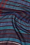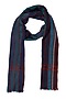 Featuring a blue woven muffler in pure wool base with red stripes.