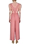 Featuring a coral textured jumpsuit in cotton rayon base with tonal kantha flowers and gold embroidery.
