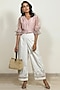 Featuring a peach blouse in cotton silk base with organza sleeves, embroidered frill, and cutwork details. This contains only one piece.