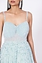 Featuring a powder blue gown in nylon and viscose base with printed stripes and sequins embroidery.