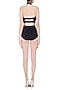 Featuring a black halter neck ruched bikini top in italian jersey base. It is paired with sculpted black high waisted briefs.