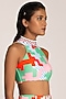 Featuring a multi-colored halter neck blouse in diamond weave jersey and resin base with camo heart print and metallic clasps. This contains only one piece.