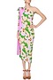 Featuring a pink color block pareo in silk satin base with green cactii print on the sides. It can be draped in 7 different ways and comes with a belt for styling.