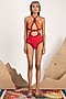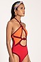 Featuring a red cut-out maillot in waste polyester and elastane base.