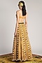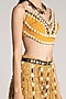 Featuring yellow overlay palazzo pants in platinum crepe and silk organza base with suderband print. It has pearl and resin skeinwork embroidery. This contains only one piece.