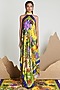 Featuring a yellow flute dress in silk satin, viscose cellulose crepe, and italian jersey base with print.