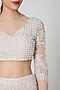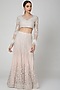 Featuring a lilac lehenga in net base with sequins and beads embroidery. It is paired with a matching blouse having feathered sleeves.