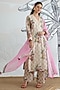 Beige & Pink Chanderi Floral Digital Printed Kurta Set