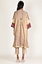 Featuring a beige and wine jacket in tissue chanderi base with zardosi embroidery. It is paired with matching cotton pants and a cotton silk inner.