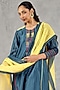 Featuring a blue kurta in chanderi base with embroidery and smocking detail. It is paired with cotton wide-leg slope pants and a dupatta. Accentuate it with dangler earrings and heels for a festive occasion, family gathering or intimate pooja ceremony.