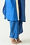 Featuring a blue tunic in pure silk base with color blocking. It is paired with pants. Accentuate with statement earrings and heels for festive occasions.