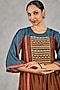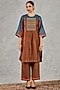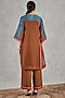 Brown & Blue Chanderi Handblock Printed Color-Blocked Kurta Set