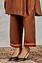 Featuring a brown and blue color-block kurta in chanderi base with handblock print and embroidery. It is paired with cotton pants having handblock printed border detail. Accentuate it with dangler earrings and heels for a festive occasion, family gathering or intimate pooja ceremony.
