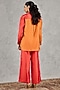 Featuring a burnt orange and red color-blocked shirt in silk base with embroidery. It is paired wide-leg pants. Accentuate it with dangler earrings and heels for a casual or get together.