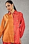 Burnt Orange & Red Silk Color-Blocked Co-Ord Set