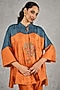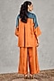 Featuring a burnt orange color-block tunic in silk base with bead and thread embroidery. It is paired with wide-leg pants. Accentuate it with dangler earrings and heels for a casual, get together or family gathering.