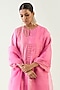 Featuring a candy pink and gold kurta in zari stripe and silk base. It is paired with cotton silk pants and a handloom organza dupatta having hand embellishment. Accentuate with statement earrings and heels for festive occasions.