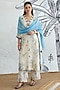 Featuring a cream and blue kurta in cotton silk base with digital print and hand embroidery. It is paired with cotton pants and a blue soft chanderi dupatta. Accentuate it with dangler earrings and heels for family gatherings or pooja ceremony.