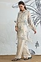 Featuring a cream kimono tunic in organza silk base with digital print. It is paired with silk satin wide-leg pleated pants. Accentuate it with stud earrings and mules for casual outings or family gatherings.