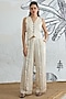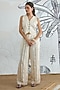 Featuring a cream waistcoat in silk satin base with digital print and a v-neck. It is paired with wide-leg pants. Accentuate it with hoop earrings and block heels for brunches, office meetings or evening wear.