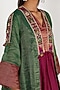 Featuring an emerald green open jacket in tissue chanderi base with antique embroidery. It is paired with a matching inner in cotton silk and zari chanderi base and pants in cotton and tissue chanderi base.