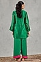 Featuring a green tunic in chanderi base with a v-neckline and motifs embroidery. It is paired with satin silk farshi salwar. Accentuate it with dangler earrings and heels for a festive occasion or family gathering.