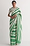 Featuring a green and white handloom saree in cotton linen base with stripes digital print. It is paired with a matching floral printed blouse.