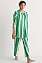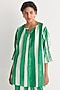 Featuring a green and white high-low tunic in cotton linen base with pockets, pintuck sleeves, scalloped lace and digital print.