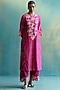 Featuring a hot pink kurta in handwoven chanderi base with cutwork and floral hand embroidery. It is paired with matching cotton silk pants having cutwork embroidery, an inner, and a chanderi dupatta.