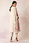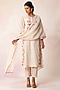 Featuring an ivory kurta in handwoven chanderi base with cross stitch and floral embroidery. It is paired with matching inner, cotton striped pants, and a soft chanderi dupatta.