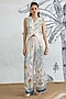 Featuring an ivory waistcoat in silk satin base with digital print. It is paired with pants. Accentuate it with hoop earrings and block heels for brunches, office meetings or evening wear.