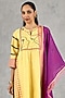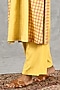 Featuring an olive yellow kurta in chanderi base with embroidery and hand block print. It is paired with an inner, cotton wide-leg pants and a dupatta. Accentuate it with dangler earrings and heels for a festive occasion, family gathering or intimate pooja ceremony.