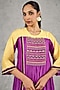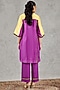 Featuring an olive yellow and purple color-block kurta in chanderi base with handblock print and embroidery. It is paired with cotton pants having handblock printed border detail. Accentuate it with dangler earrings and heels for a festive occasion, family gathering or intimate pooja ceremony.