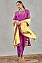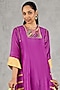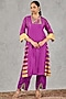 Featuring a purple kurta in chanderi base with stripe print, bead and thread embroidery. It is paired with an inner, cotton wide-leg pants and a dupatta. Accentuate it with dangler earrings and heels for a festive occasion, family gathering, intimate pooja ceremony or cultural event.
