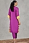 Purple Chanderi Stripe Printed & Thread Embroidered Kurta Set