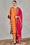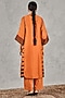 Featuring an orange kurta in chanderi base with stripe print, bead and thread embroidery. It is paired with an inner, cotton wide-leg pants and a dupatta. Accentuate it with dangler earrings and heels for a festive occasion, family gathering, intimate pooja ceremony or cultural event.