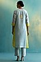 Featuring a sage green kurta in handwoven chanderi base with aari, floral thread, and beads hand embroidery. It is paired with matching cotton pants having floral embroidery, an inner, and a contrasting yellow kota silk dupatta.