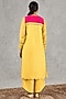Featuring a yellow kurta in chanderi base with embroidery and smocking detail. It is paired with cotton wide-leg slope pants and a dupatta. Accentuate it with dangler earrings and heels for a festive occasion, family gathering or intimate pooja ceremony.
