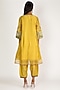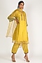 Featuring a yellow kurta in handwoven chanderi and organza silk base with zardosi embroidery. It is paired with matching cotton silk salwar pants, a dupatta, and a slip.