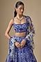 Featuring a blue lehenga in net base with thread, sequins, cutdana and resham embroidery. It is paired with an embroidered blouse and an embroidered dupatta. Accentuate the designer lehenga with zircon or swarovski jewellery, embellished heels and a clutch for a wedding, sangeet or engagement ceremony.