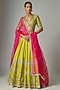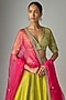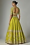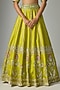 Featuring a bright green lehenga in dupion base with sequins, resham and zardosi hand embroidery. It is paired with an embroidered blouse and a dupatta. Accentuate it with statement earrings and heels for weddings or engagement ceremonies.