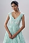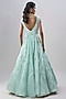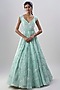Featuring a green gown in organza base with sequins embroidery. Accentuate it with statement jewellery and heels for a wedding or an engagement ceremony.