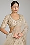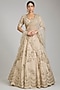 Featuring an ivory lehenga in dupion silk base. It is paired with a blouse and a dupatta. Accentuate it with statement jewellery, potli and heels for a wedding or engagement ceremony.