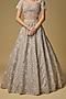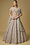Featuring an ivory lehenga in net base with thread and pearl embroidery. It is paired with an embroidered blouse and an embroidered dupatta. Accentuate the designer lehenga with swarovski or zircon jewellery, a sleek bun, embellished heels and a potli bag for a bridal look, Perfect wear for your wedding or engagement ceremony.