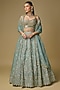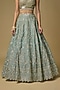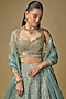 Featuring a moss green lehenga in dupion base with sequins embroidery. It is paired with an embroidered blouse and an embroidered dupatta. Accentuate the designer lehenga with kundan polki or zircon jewellery, a sleek bun, embellished heels and a potli bag for a bridal look, Perfect wear for your wedding, mehendi or engagement ceremony.
