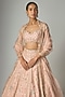 Featuring a peach lehenga in raw silk base with zardosi embroidery. It is paired with an embroidered blouse and a dupatta. Accentuate it with statement earrings and heels for weddings or engagement ceremonies.