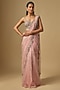 Pink Net Cutdana Embroidered Pre-Stitched Saree Set